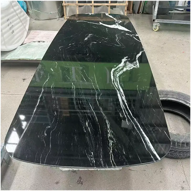 Eine weitere außergewöhnliche Option ist Tische aus blauem Labradorit-GranitSie sind bekannt für ihre leuchtend blauen Blitze und ihre kristalline Tiefe. Bei Beleuchtung enthüllt die Oberfläche schillernde mineralische Reflexe, die ein dynamisches visuelles Erlebnis schaffen. Gepaart mit Schwarzer Granit Home TischeDer blaue Labradorit-Granit sorgt für visuelle Schichtung und Reichtum und ist damit ideal für eine luxuriöse Inneneinrichtung mit Aussagekraft.
