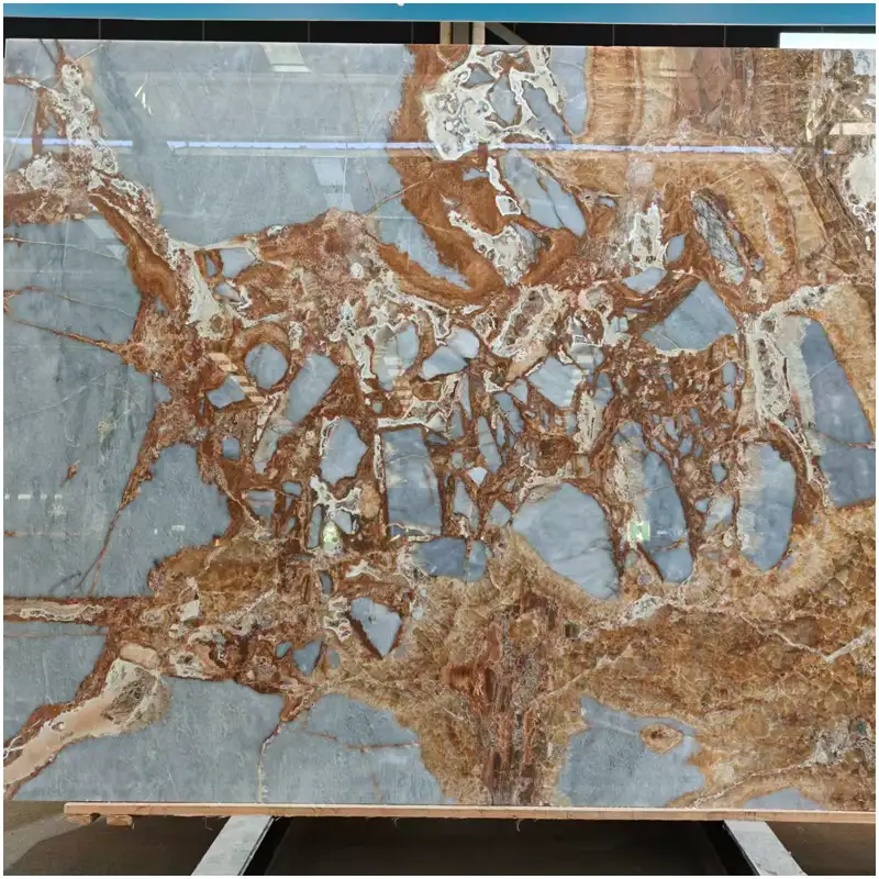Another highly sought-after material is the לוחות שיש קלציט אזול, known for its luminous blue tones and crystalline textures. This striking marble introduces a completely different visual atmosphere while maintaining the luxurious character of natural stone. Pairing Azul Calcite with Deep River Marble allows designers to create dramatic compositions where cool blue tones contrast with the earthy copper veining found within לוחות שיש מלוטשים of Deep River Marble, delivering visually rich and memorable interior spaces.
