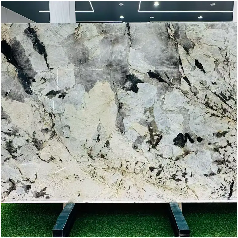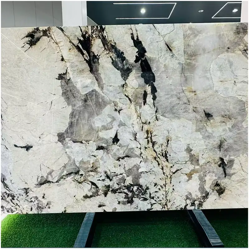 Riepilogo rapido: Lastre di quarzite Patagonia Gold sono lastre di pietra naturale esotica di prima qualità, caratterizzate da grandi formazioni di quarzo cristallino, luminosi sfondi bianco-avorio, drammatici frammenti minerali neri e calde venature oro-miele. Altamente durevoli e visivamente espressivi, sono ampiamente utilizzati per piani di lavoro della cucina, pareti caratteristiche, pavimenti di lussoe superfici architettoniche di rilievo in interni residenziali e commerciali.