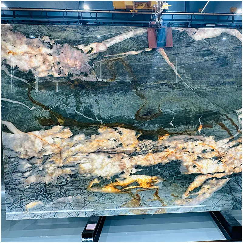 2. Cristallo Del Mare Yeşil Kuvarsit ne kadar dayanıklıdır?Yüksek yoğunluklu bir doğal taş olarak, Cristallo Del Mare Yeşil Kuvarsit ısıya, çizilmeye ve günlük aşınmaya karşı mükemmel direnç sunarak tezgahlar ve ticari alanlar için uygun hale getirir. 3. Arkadan aydınlatmalı duvarlar veya barlar için kullanılabilir mi?Kesinlikle. Kristal yapısı onu aşağıdakiler için ideal kılar Arkadan Aydınlatmalı Kuvarsit Levhalargenellikle konaklama ve lüks perakende projelerinde belirtilir. 4. Diğer Yeşil Kuvarsit Levhalardan farkı nedir?Standarttan farklı olarak Yeşil Kuvarsit LevhalarBu malzeme, çok tonlu okyanus renklerini gelişmiş yarı saydamlık ve dramatik altın damarlarla birleştirerek daha fazla görsel derinlik sunar. |